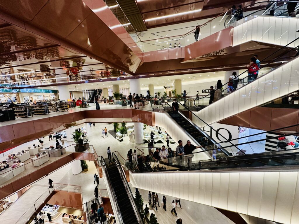 มาว่ากันส่วนหลักคือตัวห้าง โดยรวมขนาดไม่ใหญ่ เดินง่ายไม่มีหลง จำนวนชั้นไม่เยอะมาก งานตกแต่งดีงามตามธีมสามสี เงิน ทอง ทองแดง ตามฮวงจุ้ย ถ่ายรูปมุมไหนก็ออกมาสวย แม้จะไม่สวยอลังการเท่าเซ็นทรัลเอ็มบาสซี แต่ก็ดูดีมากๆ ในแบบของตัวเอง
