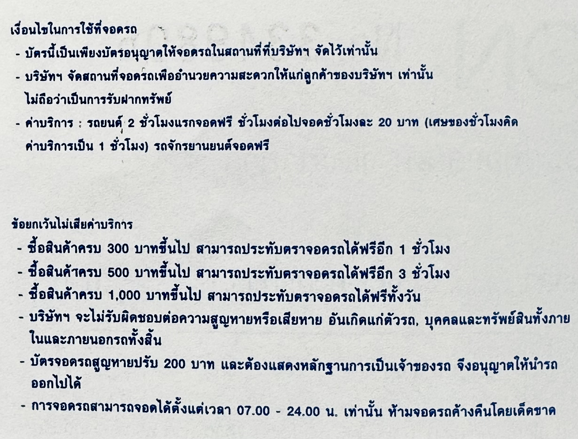Parking | เงื่อนไขจอดรถ